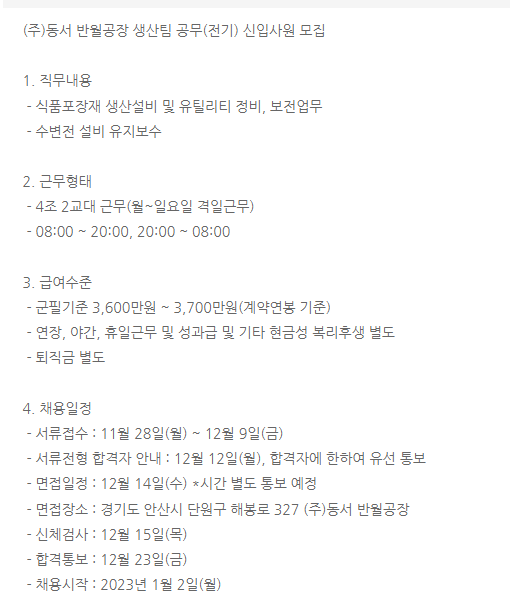 동서 생산직 자소서 첨삭: 채용공고 분석 및 합격 자기소개서 예시