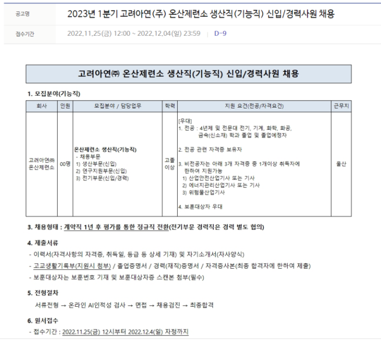 고려아연 자소서 첨삭: 생산직 합격 자기소개서 항목 분석